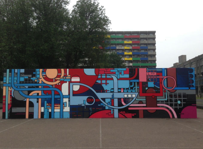 Mick La Rock (Aileen Esther Middel) is op haar dertiende begonnen met het schrijven van haar naam in graffiti. Met de traditionele 'New York School' graffitistijl als voorbeeld begon Mick met het zetten van standaard graffiti letters. Nadat ze deze kunst in de vingers had en met de meest prominente graffiti kunstenaars uit New York had gewerkt ging Mick op zoek naar nieuwe uitdagingen. Mick begon met het (ver)draaien en binnenstebuiten keren van haar letters om zo nieuwe vormen en functies binnen haar werk toe te laten. Het resultaat hiervan is terug te zien in haar huidige werk waarin ze een minimalistische tweedimensionale en driedimensionale benadering toepast. Ze werkt met verschillende lagen en abstraheert de elementen van haar graffiti naam. Door deze vervorming krijgen de elementen een betekenislaag die voorbij de oorspronkelijke essentie en compositie gaat.